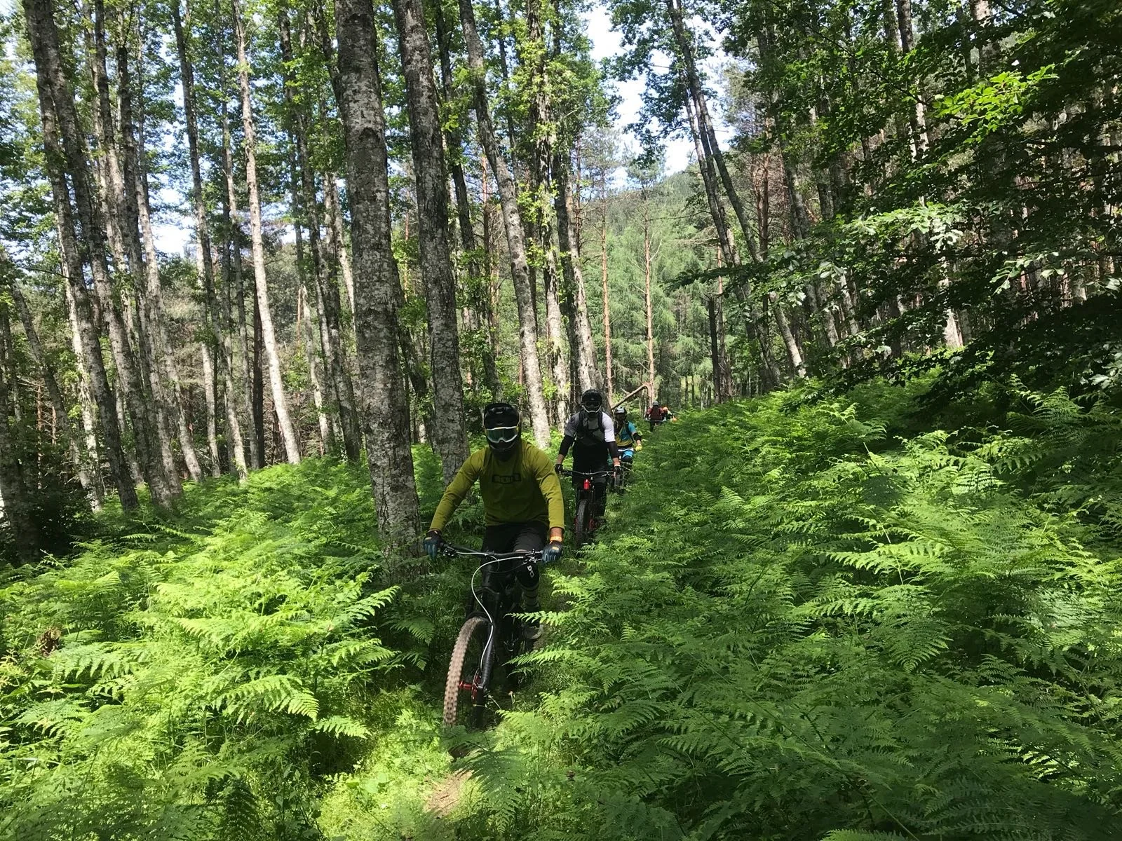 Per l’enduro MTB si utilizza una bicicletta con sospensioni anteriori e posteriori (full-suspension), con un’escursione generalmente compresa tra 140 mm e 170 mm. Le biciclette da enduro sono progettate per essere efficienti in salita e performanti in discesa. I corsi sono aperti anche ai possessori di e-bike.